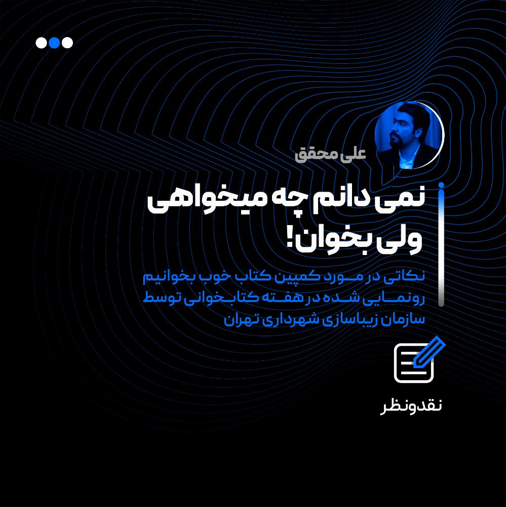 نمیدانم چه میخواهی ولی بخوان! این طرح و بنرهایش به میزانی ناقص است که نمیتوان فهمید آنها را جزو کدوم محصولات تبلیغاتی به حساب آورد؛ پوستر، اطلاعیه، کمپین و یا… بیننده در مواجهه با بنرها، فقط یک پیامی را شکسته و بسته(البته با تلاش) دریافت می کند: «این روزها جزو هفته کتاب خوانی است».پیامی تقویمی که با نوشتن همین جمله بر روی بیلبوردها و استرابوردهای شهری کفایت میکرد و نیازی به این صورت فعلی نبود. از آنجایی که در این مجموعه بنرها (500 بیلبورد در شهر)، تلاشی ناقص برای معرفی کتابها شده است؛ میتوان فرض را بر این گذاشت که آن ها با هدف معرفی کتاب ها اجرا شده اند. اما با توجه به اینکه که هدف را معرفی کتاب فرض کردیم الزاماتی در طراحی و اجرای این بنرها در قالب یک کمپین وجود دارد و خواهد داشت که متاسفانه در این طرحِ به ظاهر فرهنگیِ سازمان زیبا سازی شهرداری تهران رعایت نشده است. اجرای این بنرها در قالب کمپین، تخصصی مستقل و گرافیکی می طلبد که الزامات اجرایی و تکنیکی اش را به متخصصین امر باید سپرد. اما در این نوشتار به الزامات طراحی و برنامه ریزی طرح کمپین می پردازیم که به آن ها توجهی نشده است. الزامات طراحی: مخاطب کیست و کجاست؟ چه کتبی باید معرفی گردد؟ مخاطب را دعوت به چه اقدامی میکند؟ اصلا باید دعوت کند؟ پیام چیست؟ 1.مخاطب کیست و کجاست؟ با توجه به شعار تهران (شهری برای همه) کتاب های معرفی شده در بنرها همسو با این شعار نیستند. غالب این کتابها برای قشر خاصی است. بافت اجتماعی و فرهنگی تمام مناطق تهران یکسان نیستند. میتوان با توجه به محل رسانه های محیطی در هر یک از مناطق شهری، کتاب هایی را متناسب با خرده فرهنگ آن محله های شهری معرفی کرد. این مرحله نیاز به مردم نگاری دارد تا مخاطبان شناسایی و هدفگذاری شوند. 2.چه کتبی باید معرفی گردد؟ به آب بستن ذهن مخاطب جز گندیدن فکر و ذهناش نتیجهای ندارد. باید دید مخاطب تشنه چه نوع مطالب و کتبی است. این امر غالبا پیرامون مسائل و موضوعاتی است که روزانه در شبکه های اجتماعی مخاطب را درگیر کرده و اصطلاحا ترند شده است. این موضوعات جذاب و مبتلابه، مخاطبان را برای بررسی کتاب های مرتبط با مسائل روز که دانش و اطلاعاتشان را نسبت به آنها بیشتر خواهد کرد، ترغیب می کند. 3.مخاطب را دعوت به چه اقدامی کند؟ اصلا باید دعوت کند؟ اگر قرار است صرفا آگاهی ای از هفته کتاب و کتابخوانی برای مخاطب ایجاد شود نیاز نیست در طرح ها و بنر ها مخاطب را دعوت به اقدامی کنیم. اما اجرای این طرح در این مقیاس بدون ایجاد جریان و بازخور به هیچ عنوان نمی صرفد. وقتی قرار است در سال یک بار شهر(شهرداری) تهران به کتاب و کتابخوانی بپردازد. هیچ کس در اولین مواجهه و معرفی یک کتاب، در لحظه نمی پذیرد که آن را دست بگیرد و بخواند. اول از همه موضوع مسئله محور کتاب، مخاطب را به بررسی آن وا می دارد. دوما باید بستر بررسی مهیا شود. مقصود، دعوت بیینده به اقدامی در راستای کتابخوانی است که منجر به بررسی بیشتر یک کتاب شود تا شرایط برای انتخاب یک کتاب مهیا و تصمیم برای خواندنش تقویت شود. هر اقدام بهینهای می تواند باشد. می تواند کد تخفیف باشد، یا درج آدرسی اینترنتی در بنرها تا در آنها مخاطب، کتاب ها و معرفی تفصیلی شان را ببیند و بخواند. یا حتی در راستای حمایت از کسب و کارهای نوپا می توان به همکاری با پلتفرم های کتاب خوان الکترونیک یا امثالهم اشاره کرد. رفت و آمد شهروندان به این پلتفرم ها هم کم نیست. 4.پیام چیست؟ کمپینی که ارتباط ایجاد نکند نمیتواند به هدفش برسد. ساخت ارتباط هم با ایجاد پیام محقق می شود. قبل از آنکه کتاب معرفی گردد یا مخاطب را دعوت به اقدامی کند و یا هر اتفاق دیگر که با دقت و توجه به پوستر و بنرهای این کمپین قرار است در ذهن بیننده اش شکل بگیرد؛ باید با دیدن آنها پیامی دریافت شود. پیام قبل از هر چیز با ترکیب محتوا و فرم در مواجهه اولیه منتقل میگردد که بعد از دیدن یک یا دو بنر محیطی از این کمپین، مخاطب توجه و دقت اش برای دریافتن محتوا در سوم